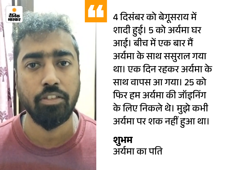 ये कहना है अर्यमा के पति शुभम का। शुभम इन दिनों काफी परेशान हैं। बेगूसराय में अपनी मां की देखरेख कर रहे हैं।