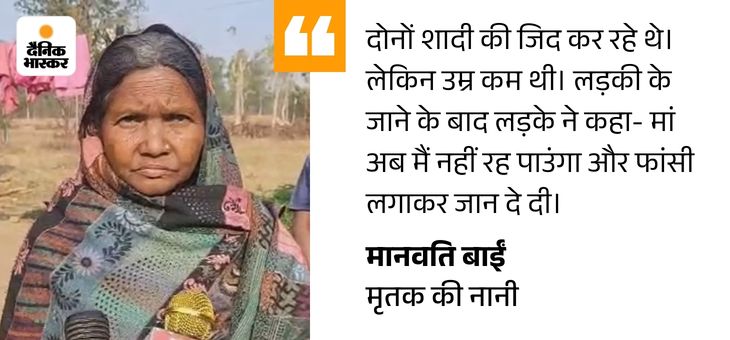 युवक की नानी मानवति का कहना है कि, लड़के की उम्र कम थी। दोनों ज्यादा दिन नहीं रुक पाएंगे कह रहे थे। देर रात सोते समय लड़की ने फांसी लगा ली। उसे लड़के ने नीचे उतारा।