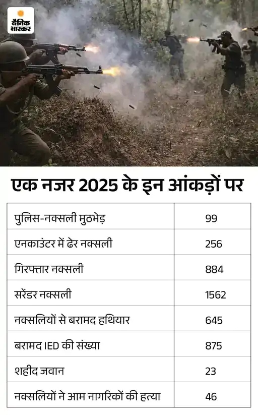 बीजापुर एसपी डॉ जितेंद्र कुमार यादव के मुताबिक 2025 में जिले में हुए अलग-अलग मुठभेड़ों में 163 माओवादी मारे गए, वहीं, 2026 में अब तक 11 माओवादी ढेर चुके हैं।