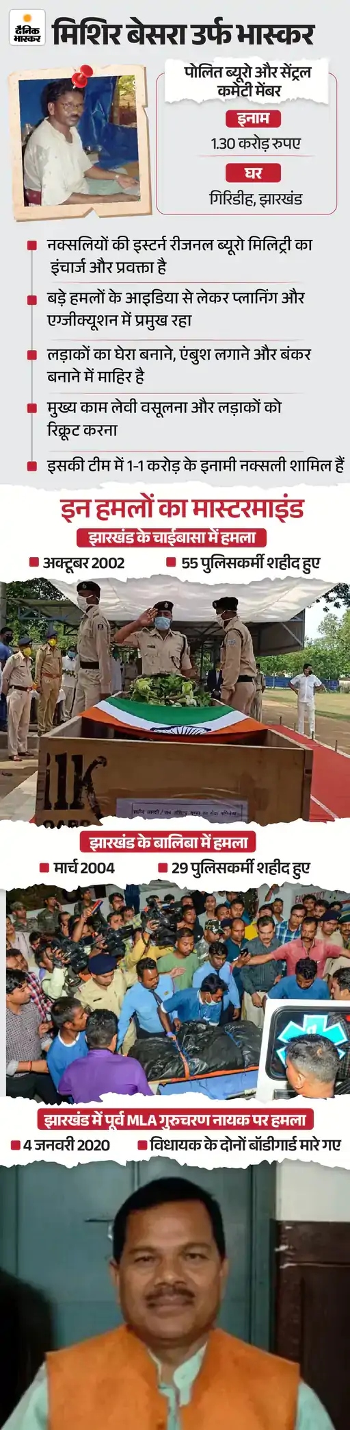 2. मिशिर बेसरा उर्फ भास्कर उर्फ सर्निमल उर्फ सुनील, 1.30 करोड़ का इनाम