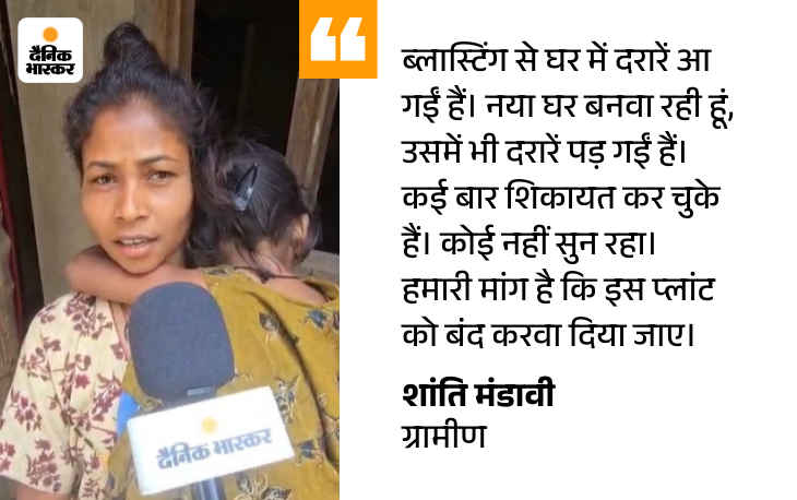 शांति मंडावी ने बताया कि क्रशर प्लांट में ब्लास्ट करते हैं तो पूरा घर हिल जाता है। झटका ऐसा होता है कि लाइटें भी गुल हो जाती है। बच्चे डरते हैं। डर की वजह से अंदर घुस जाते हैं। उन्हें बाहर निकालना मुश्किल हो जाता है। इससे उनकी मानसिक स्थिति पर भी काफी प्रभाव पड़ता है।