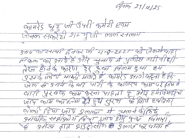 एनकाउंटर के बाद सर्च ऑपरेशन के दौरान पुलिस को उसके हिसाब किताब भी बरामद किया है। 27 दिसंबर 2025 को लिखे लेटर कामरेड घुटु जी एवं जोनल सेक्रेटरी शंभू जी को लाल सलाम करते हुए लिखा गया था, जिसमें दिनकर के 4 सितंबर 2025 को जेल से बाहर आने और चुनाव के दौरान पुलिस की गतिविधि तेज होने के कारण जेल से निकलने में देरी होने के लिए माफी मांगी गई है।