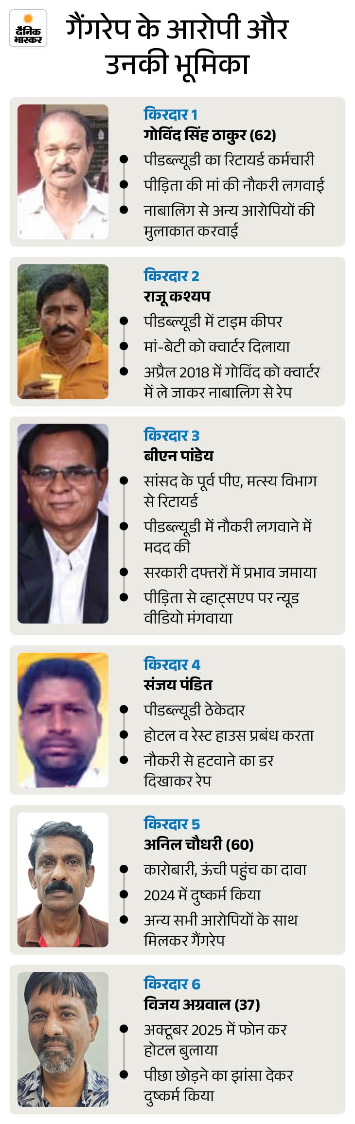 पांडेय ने पीडबल्यूडी में फोन कर अफसरों को निर्देशित किया था। रेस्ट हाउस और सर्किट हाउस में हर जगह प्रभाव जमाया। नौकरी की वजह से पीड़िता दबाव में थी। अब आरोपी उससे वाट्सऐप पर न्यूड वीडियो मंगवाने लगे। स्टाफ ग्रुप में वीडियो वायरल करने की धमकी देते लगे। इस तरह से लड़की को लंबे समय तक डर में रखा।