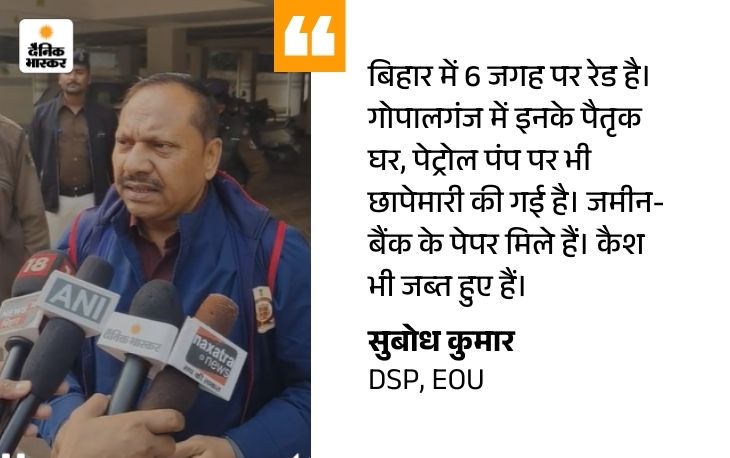 EOU ने शुक्रवार को सेंट्रल को-ऑपरेटिव बैंक के विकास पदाधिकारी भावेश कुमार सिंह के 6 ठिकानों पर रेड की। पटना में 4 और गोपालगंज में 2 जगहों पर टीम ने 11 घंटे तक तलाशी ली।