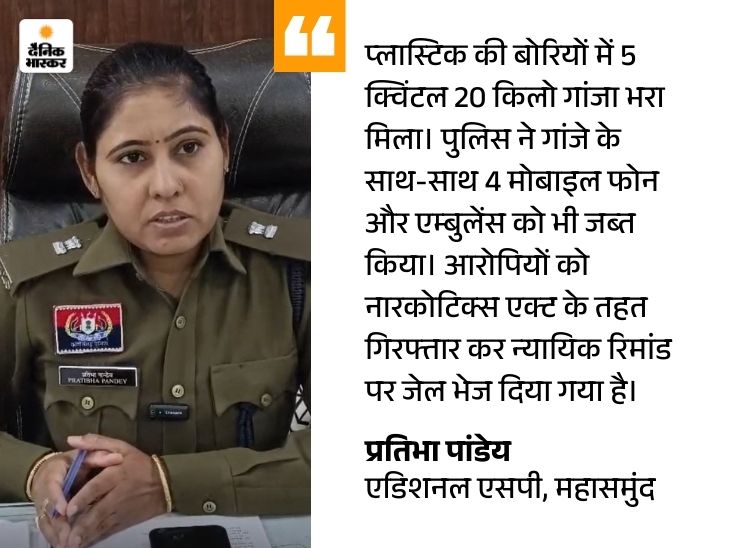 महासमुंद पुलिस ने एम्बुलेंस से 2.60 करोड़ का गांजा जब्त किया है।
