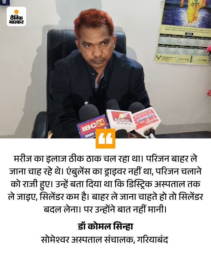 इसके बाद परिजनों को बताया गया कि एंबुलेंस में लगा ऑक्सीजन सिलेंडर पूरी तरह खाली था, जिसके कारण मरीज को ऑक्सीजन नहीं मिल पाई।