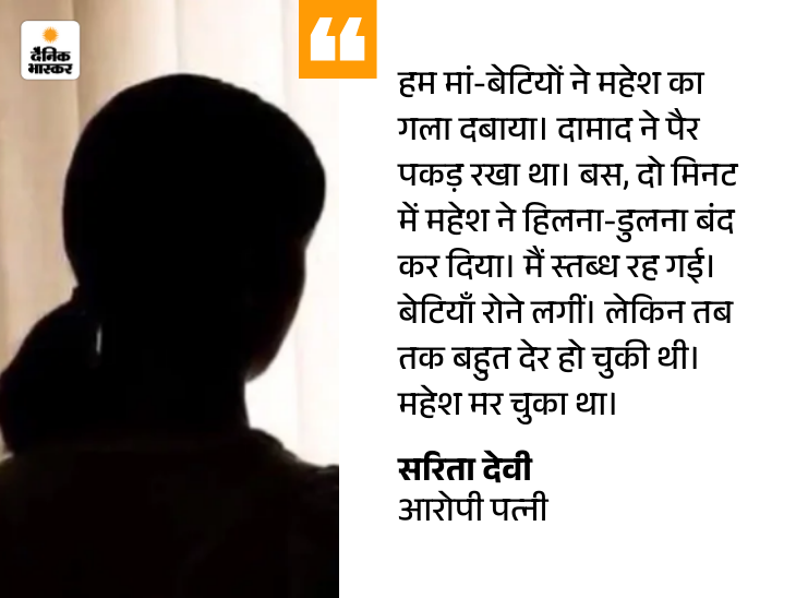 सरिता ने बताया, ‘वारदात वाली रात ज्यादा शराब पीकर घर आया था। उस रात मेरी जमकर पिटाई की। उसने घर में थाली फेंक दी, बेटियों को गाली दी और मुझ पर चिल्लाने लगा। दामाद भी उसी समय घर आया हुआ था। दामाद ने कहा कि बाबूजी, आप मत पीटिए। फिर महेश ने उसे भी धक्का दे दिया और बोला कि तुम लोग सब मेरे दुश्मन हो।