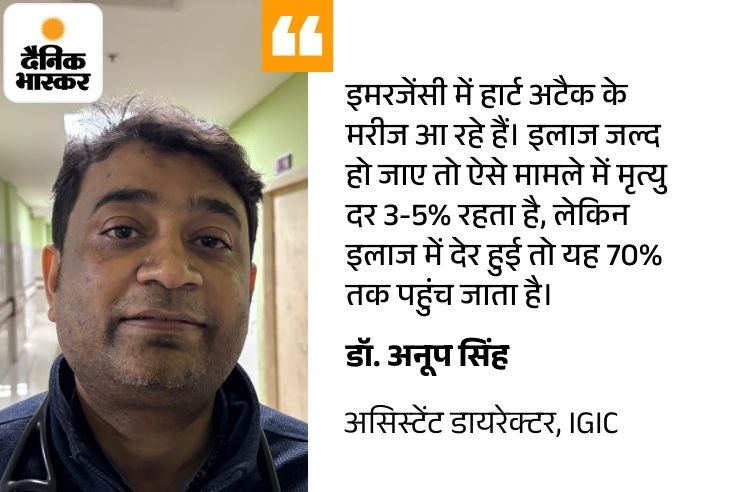 ठंड के मौसम में दिल के मरीज बढ़ने को लेकर हमने अस्पताल के असिस्टेंट डायरेक्टर डॉ. अनूप सिंह से बात की। उन्होंने कहा, ‘ठंड के दिनों में दिल के मरीज बढ़ जाते हैं। हार्ट अटैक के अलावा चेस्ट से जुड़ी समस्या बढ़ जाती है। अभी ओपीडी में जितने मरीज आ रहे हैं, उसमें से 30% कार्डियक पेन की शिकायत करते हैं।’