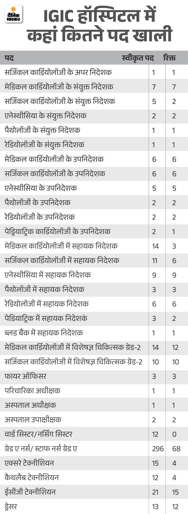 निदेशक ने 3 सितंबर 2025 को इन पदों पर बहाली के लिए स्वास्थ्य विभाग के अपर मुख्य सचिव को पत्र लिखा था। भास्कर ने आईजीआईसी के वरिष्ठ चिकित्सा पदाधिकारी सह लोक सूचना पदाधिकारी डॉ. अमिताभ से बात की।