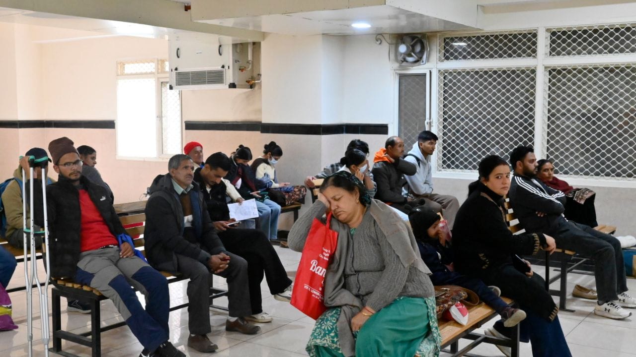 शिमला के आईजीएमसी अस्पताल में मेडिसिन ओपीडी के बाहर लगी मरीजों की लाइन
