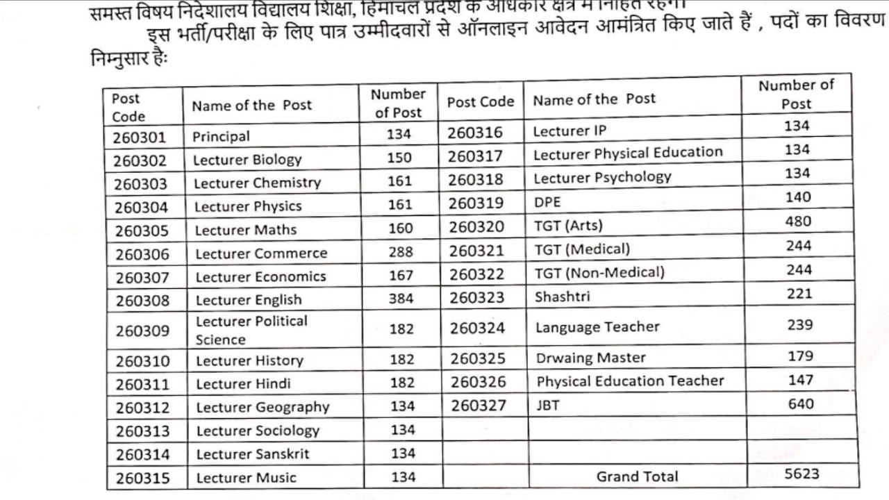 हिमाचल प्रदेश स्कूल शिक्षा निदेशालय की ओर से प्रदेश स्कूल शिक्षा बोर्ड के माध्यम से सीबीएसई से संबद्ध 134 सरकारी स्कूलों में सीबीएसई सब कैडर में प्रतिनियुक्ति के लिए 5,623 पदों के लिए स्क्रीनिंग टेस्ट किया जाएगा। यह परीक्षा स्कूल शिक्षा निदेशालय के अधीन कार्यरत सेवारत उन शिक्षकों के लिए होगी, जो लागू भर्ती एवं पदोन्नति नियमों के प्रासंगिक प्रावधानों के अंतर्गत निर्धारित आवश्यक शैक्षणिक योग्यताएं एवं पात्रता शर्तें पूर्ण करते हैं। स्कूल शिक्षा बोर्ड की भूमिका केवल स्क्रीनिंग टेस्ट के आयोजन, पद वार मेरिट सूची तैयार करने व परिणाम घोषित करने तक सीमित रहेगी। जबकि पात्रता निर्धारण, प्रतिनियुक्ति, पदस्थापन तथा सेवा संबंधी समस्त विषय स्कूल शिक्षा निदेशालय के अधिकार क्षेत्र में निहित रहेंगे। इस भर्ती परीक्षा के लिए बोर्ड ने बुधवार को पात्र उम्मीदवारों से ऑनलाइन आवेदन आमंत्रित किए हैं।