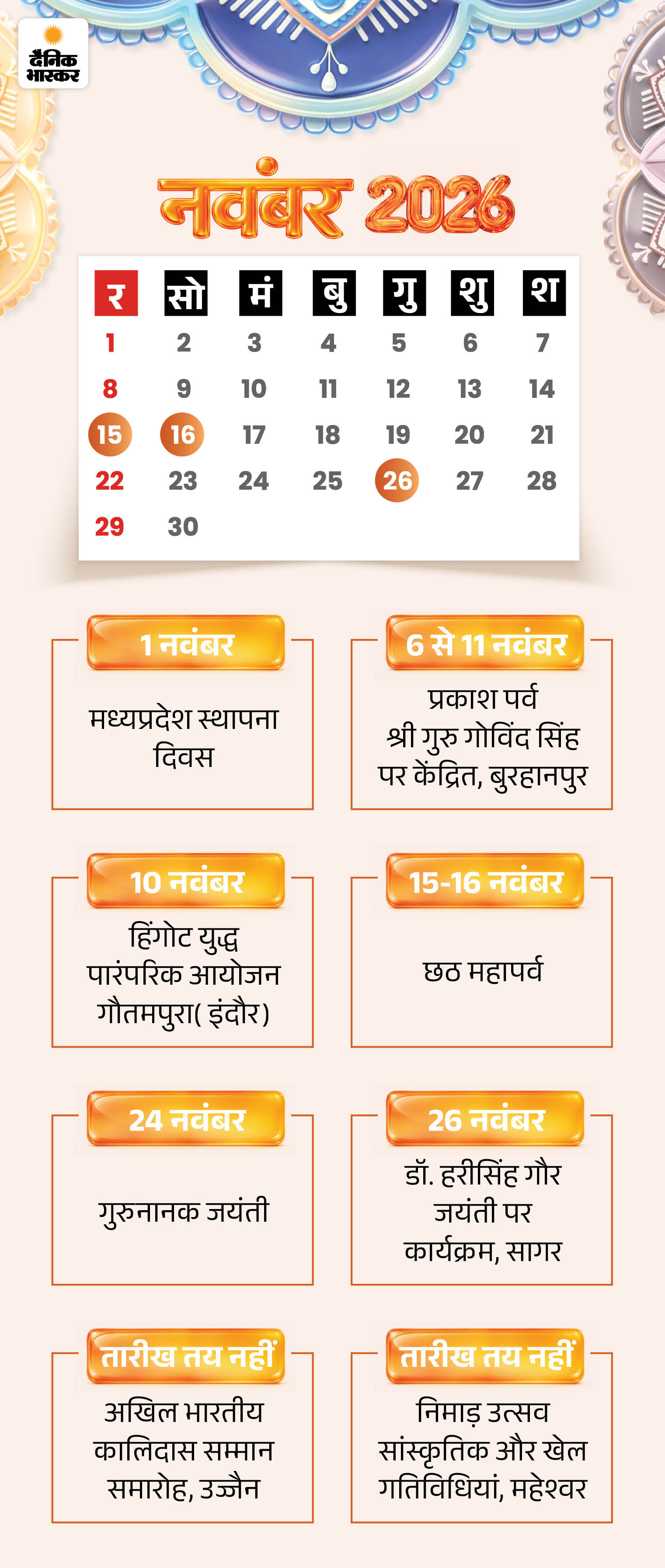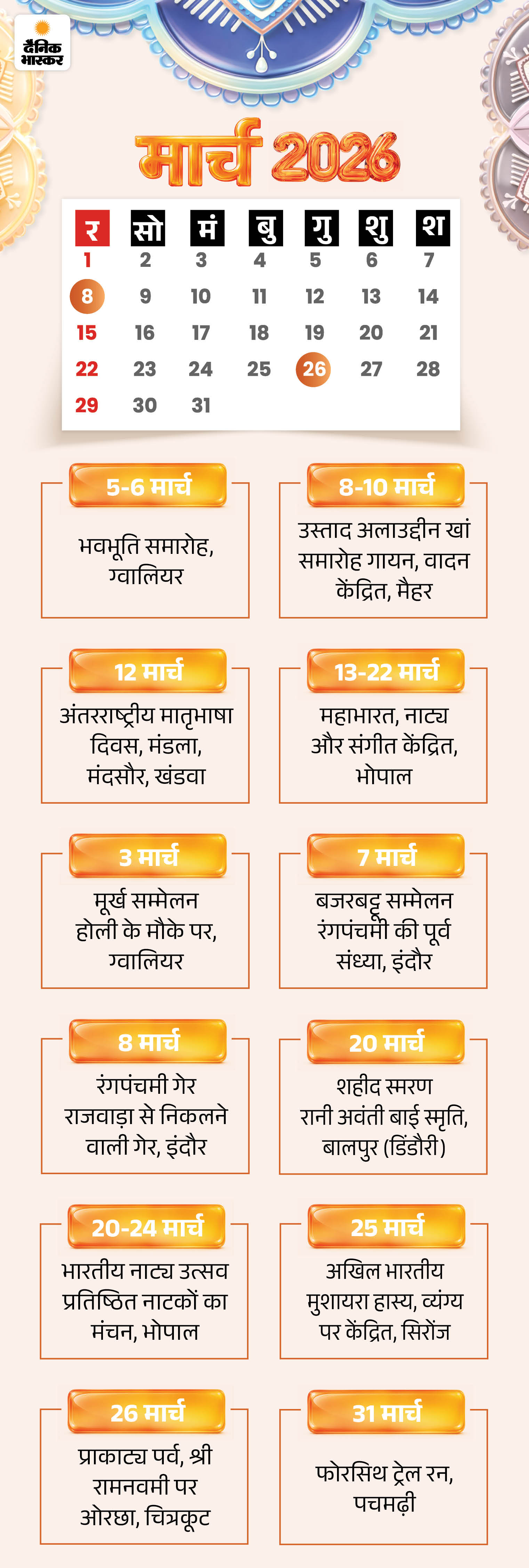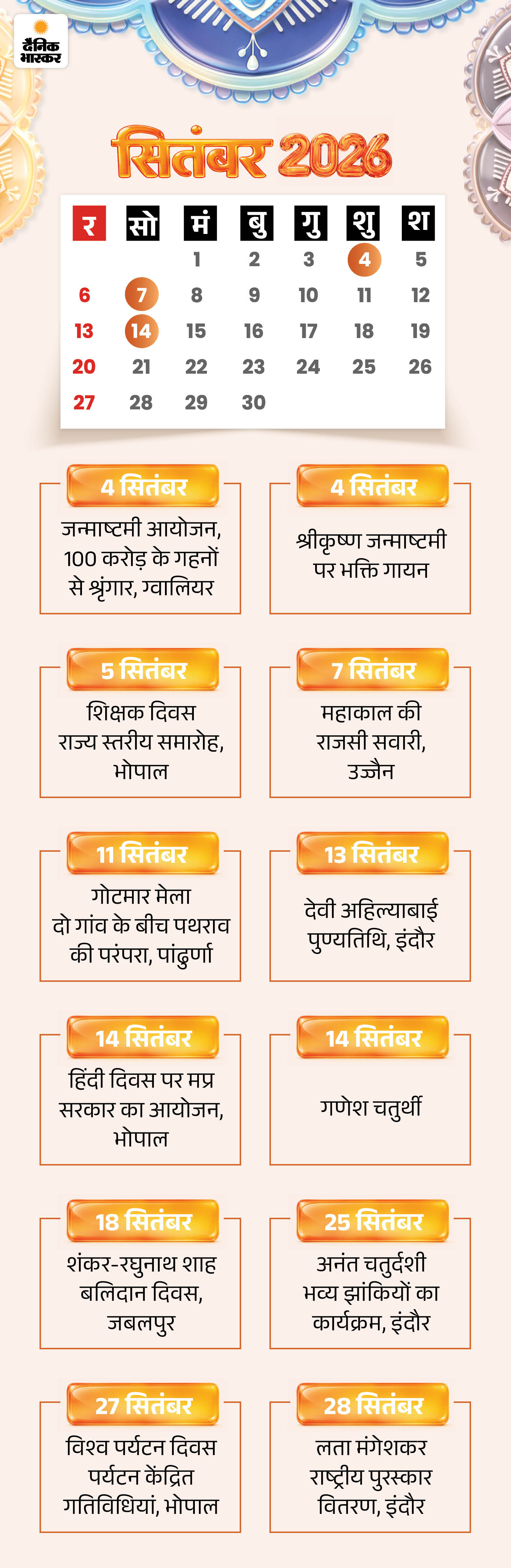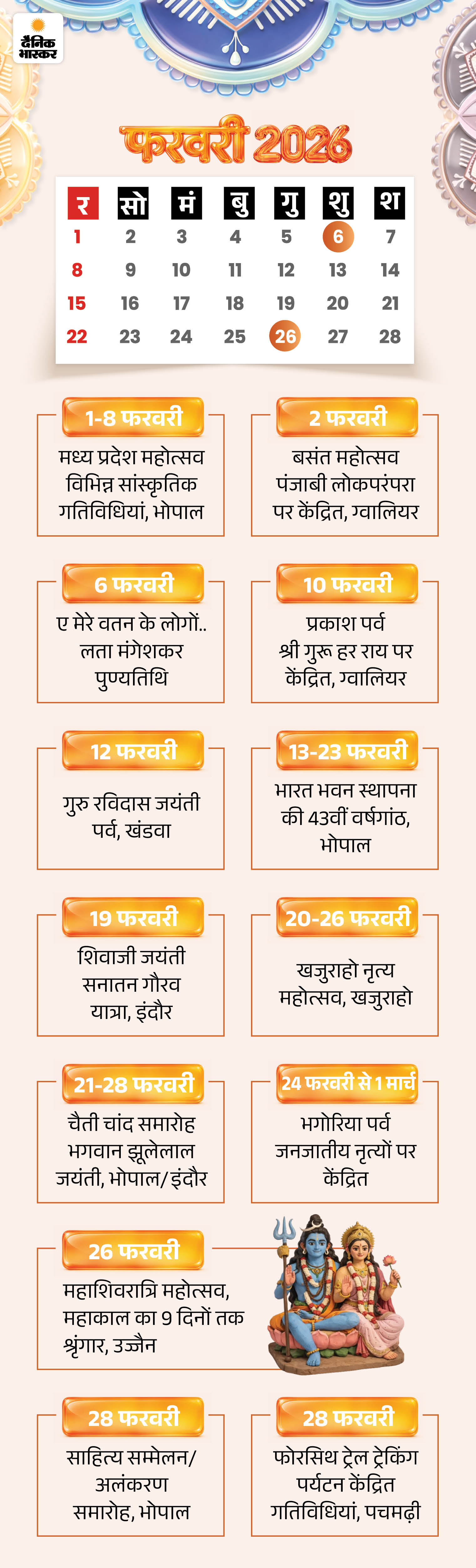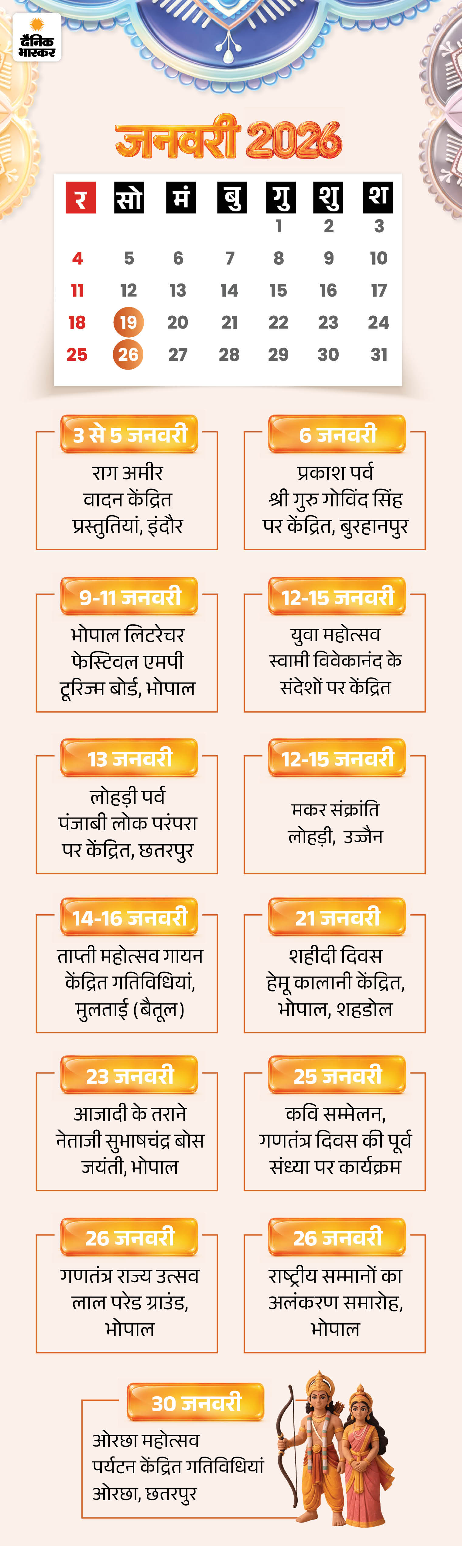 साल 2026 में मध्यप्रदेश में किस महीने में कितनी सरकारी छुट्टियां और कहां-कब बड़े इवेंट हैं, जानिए 13 क्रिएटिव में…