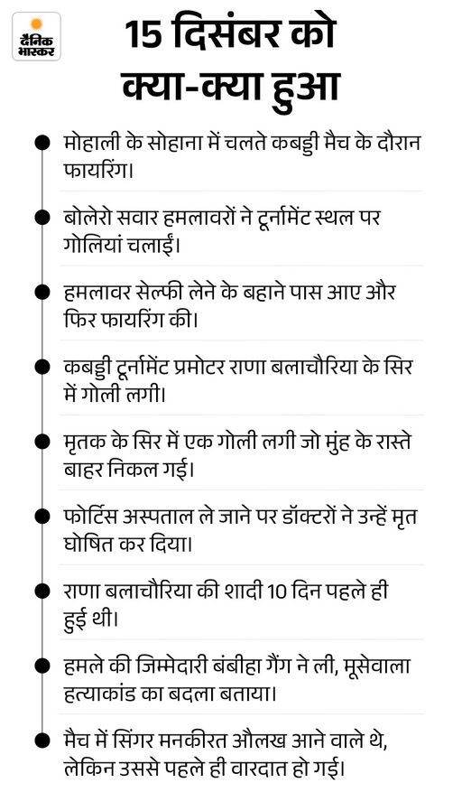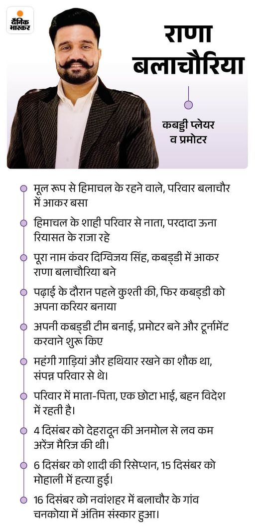 मोहाली के सोहाना के पास कबड्डी के दौरान हुई कुंवर दिग्विजय सिंह उर्फ राणा बलाचौरिया की हत्या के पीछे कबड्डी में दबदबे और फिरौती के एंगल से भी पुलिस जांच कर रही है।