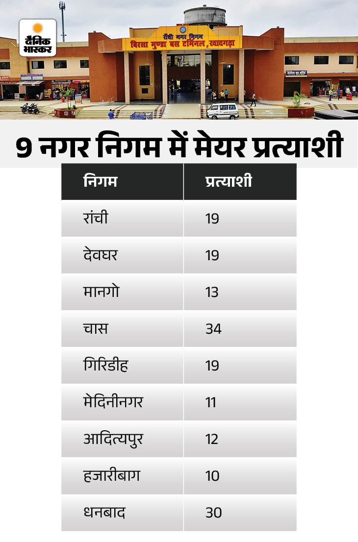 बताते चलें कि झारखंड में नगर निकाय चुनाव कुल 48 जगहों पर चुनाव होने हैं। इसमें 9 नगर निगम, 20 नगर परिषद तथा 19 नगर पंचायत में चुनाव होने हैं। इसमें सभी पदों में कुल 6,555 उम्मीदवारों में 3,229 महिलाओं ने अलग-अलग पदों के लिए नामांकन किए हैं। इसमें महापौर और अध्यक्ष के लिए 251 तथा वार्ड पार्षद पद के लिए 2978 महिलाओं ने नामांकन दाखिल किया है।