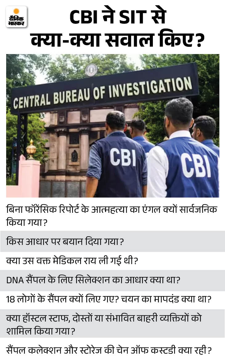 CBI ने यह भी सवाल किए कि परिवार का आरोप है कि हम पर दबाव बनाया गया। SIT ने परिवार से कितनी बार मुलाकात की? क्या बयान रिकॉर्डिंग में वीडियोग्राफी हुई? क्या परिवार की शिकायतों को केस डायरी में दर्ज किया गया?