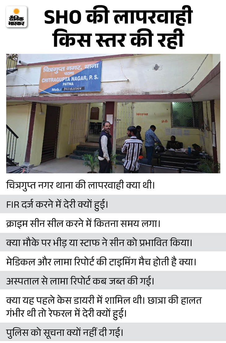 घटनाक्रम की पूरी टाइमलाइन तैयार की जा रही है, ताकि यह स्पष्ट हो सके कि किस चरण पर क्या हुआ। इसी क्रम में टीम जांच के लिए पहले सहज हॉस्पिटल और उसके बाद प्रभात मेमोरियल हॉस्पिटल भी जाएगी, जहां छात्रा के इलाज से जुड़े रिकॉर्ड और मौजूद लोगों से पूछताछ की जाएगी।