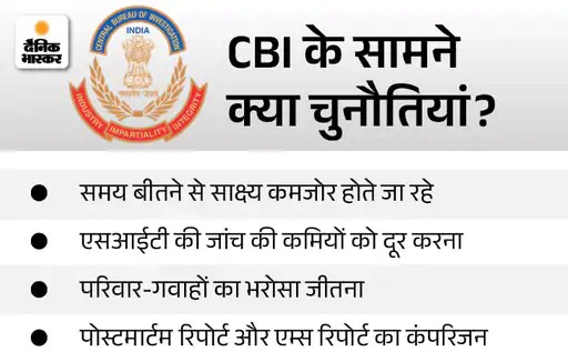 इसके बाद उसे सबसे पहले किस अस्पताल ले जाया गया? फिर किन-किन अस्पतालों में रेफर किया गया? उस समय उसके साथ कौन-कौन लोग मौजूद थे? CBI की टीम फिलहाल इन्हीं कड़ियों को जोड़ने में जुटी है।