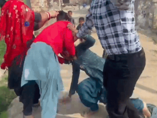 फाजिल्का में युवक को लेकर 2 महिलाएं भिड़ गईं। लुधियाना से आई महिला ने युवक के घर के बाहर डेरा डाल दिया। उसने हरमेश सिंह को अपना पति बताया। इसके बाद घर में मौजूद हरमेश की पत्नी और लुधियाना से आई महिला के बीच विवाद शुरू हो गया। इस दौरान दोनों महिलाएं आपस में भिड़ गईं, जिससे स्थिति तनावपूर्ण हो गई।