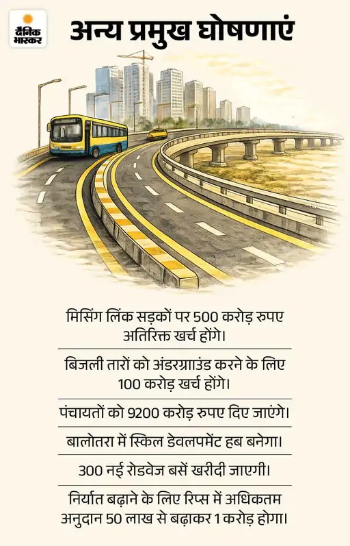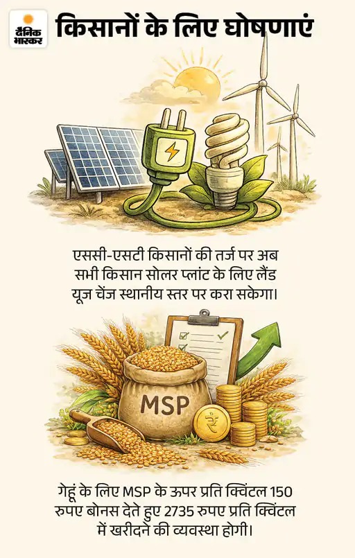 सीएम ने जवाब में युवा-गांव-गरीब के साथ कर्मचारी, जन प्रतिनिधि, उद्योग, इन्फ्रा सहित लगभग सभी वर्गों को साधा। 1 लाख पदों की जगह 1.25 लाख पदों पर भर्ती कैलेंडर जारी करने की घोषणा की। पंचायतों को 9200 करोड़, जीरामजी स्कीम में मजदूरों को हर सप्ताह पैसा, सामाजिक सुरक्षा पेंशन बढ़ाने जैसे कई वादे किए।