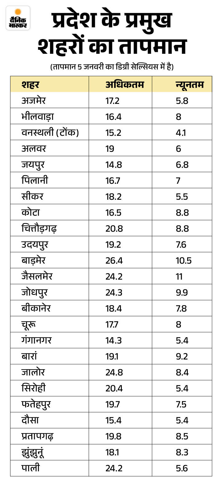 राज्य के 19 शहरों में दिन का सबसे अधिकतम तापमान 20 डिग्री सेल्सियस से नीचे दर्ज हुआ। गंगानगर में सोमवार को सबसे ठंडा