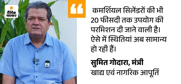 देशभर में LPG की किल्लत पर राजस्थान के खाद्य एवं नागरिक आपूर्ति मंत्री सुमित गोदारा ने अगले 10 दिन में हालात सामान्य होने का दावा किया है। दैनिक भास्कर से खास बातचीत में उन्होंने कहा- मैं मानता हूं शुरुआत के कुछ दिन पैनिक बुकिंग के चलते गैस वितरक कंप