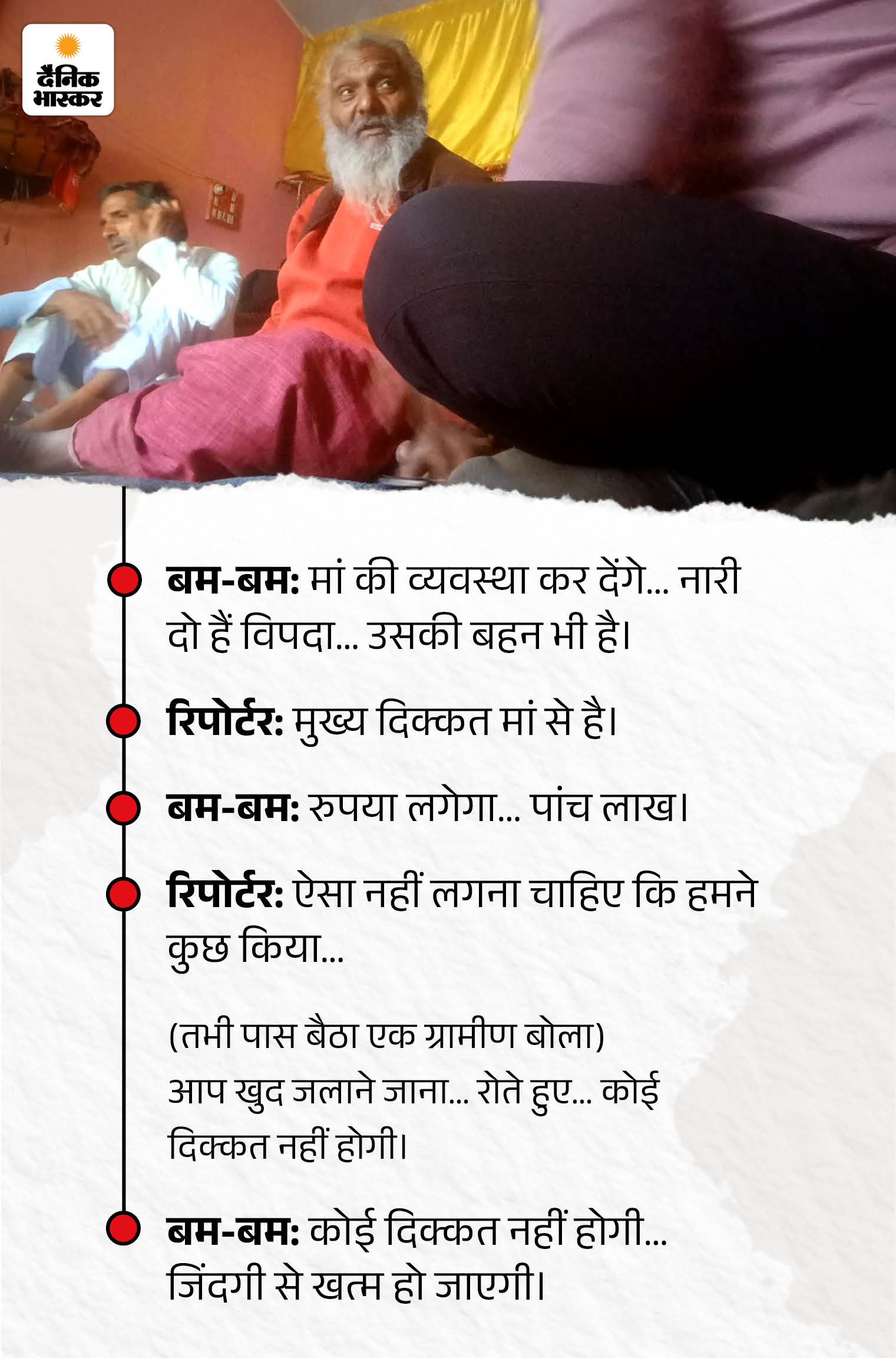 बम-बम: उसने किसी और से रिश्ता बना लिया यार… खर्चा होगा भैया… एक लाख रुपए। नागा बाबा हैं हम… सही बोलते हैं, अघोरी हैं। 50 हजार की पूजा होगी, 50 हजार इन्हें (सहयोगी को) दे देना। मैं तो बाद में लूंगा, जब औरत वापस आ जाएगी।