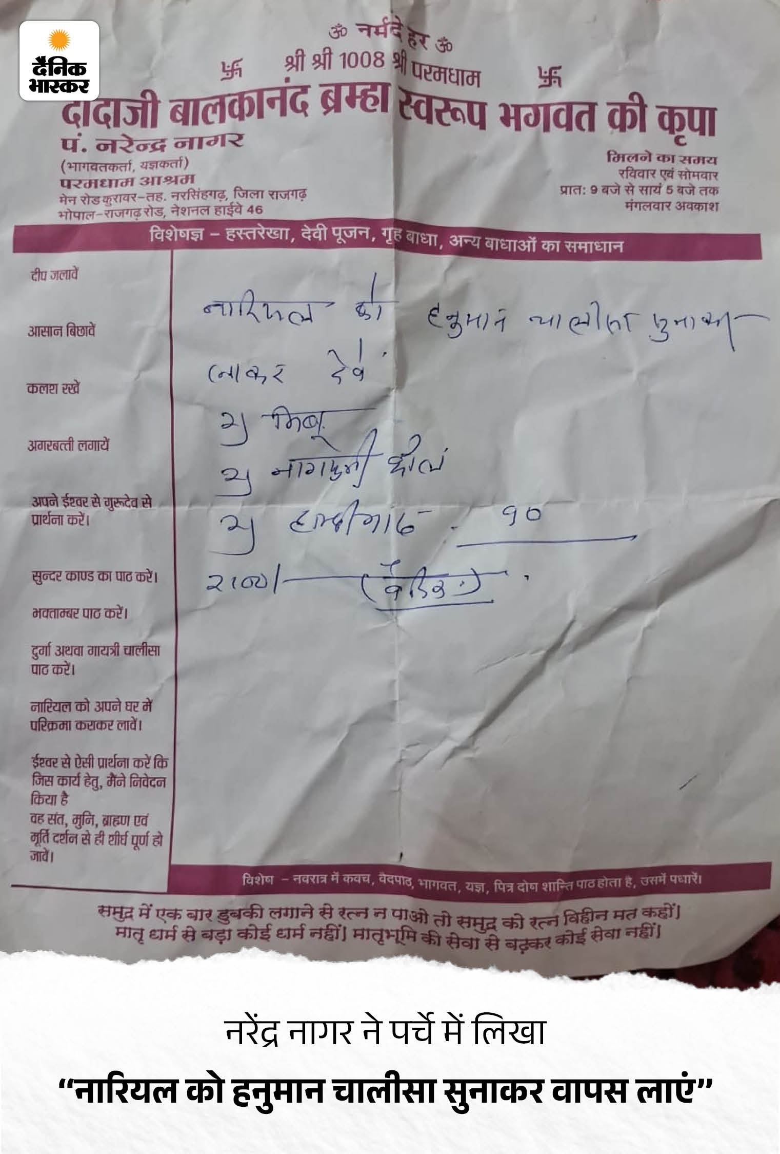 पड़ताल पार्ट 2: पंडित बोला- 2100 रुपए और 90 दिन लगेंगे हमारी अगली मंजिल एनएच-46 पर कुरावर रोड स्थित पंडित नरेंद्र नागर का आश्रम था। यहां का माहौल अलग था। लोगों की भीड़ थी और पंडित नागर दावा कर रहे थे कि कई आईएएस और आईपीएस अधिकारी उनके भक्त हैं। रिपोर्टर ने यहां भी अपनी वही कहानी सुनाई।