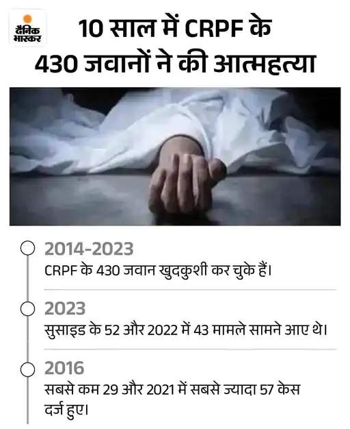 इससे 2 महीने पहले, दंतेवाड़ा जिले में CRPF (केंद्रीय रिजर्व पुलिस बल) के जवान ने फांसी लगाकर आत्महत्या कर ली थी। मृतक की पहचान जशवीर सिंह (46) कॉन्स्टेबल वाशर मेन कानपुर के भवानीपुर के रूप में हुई थी। जवान गीदम स्थित सीआरपीएफ 231 बटालियन के हेडक्वार्टर में पोस्टेड था। पढ़ें पूरी खबर…