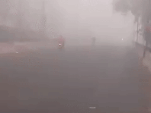 बीकानेर के ग्रामीण इलाकों में सोमवार सुबह विजिबिलिटी शून्य रही।